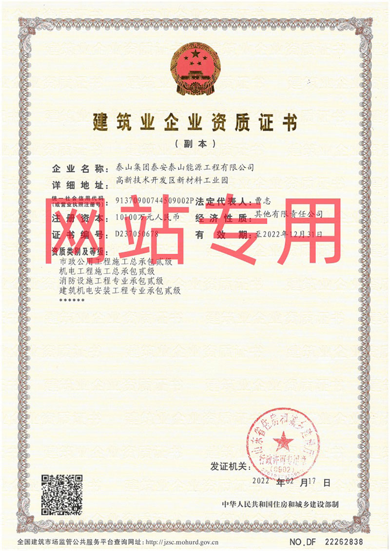 市政公用工程施工總承包貳級(jí)、建筑機(jī)電安裝工程專業(yè)承包貳級(jí)、機(jī)電工程施工總承包貳級(jí)、消防設(shè)施工程專業(yè)承包貳級(jí)