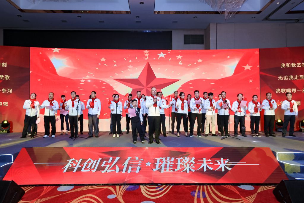 “我和我的祖國,一刻也不能分割。無論我走到哪里,都流出一首贊歌”。尾牙以一首《我和我的祖國》拉開序幕,弘信人凝聚在此刻。創(chuàng)業(yè)報國,科技強國,祖國在我心,追夢步不停。